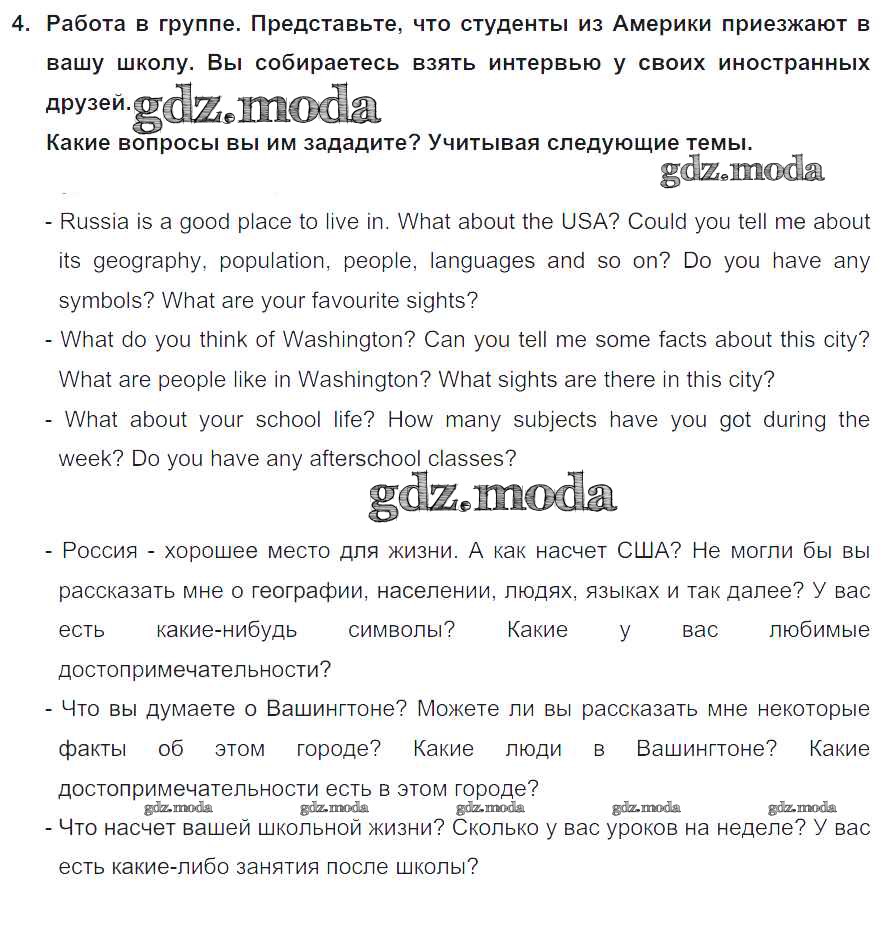 ГДЗ решение к заданию № 4 Английский язык 8 класс Кузовлёв В.П. Просвещение 2015 ФГОС бесплатно на гдз.мода!