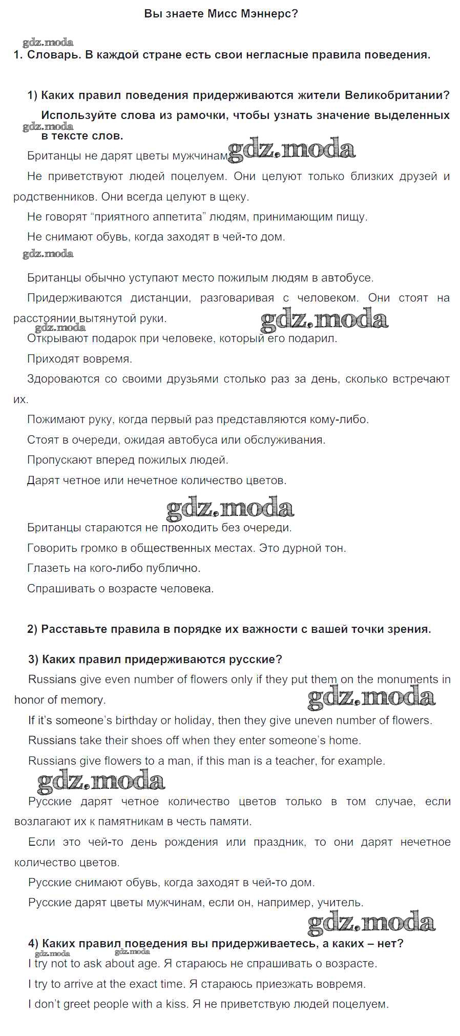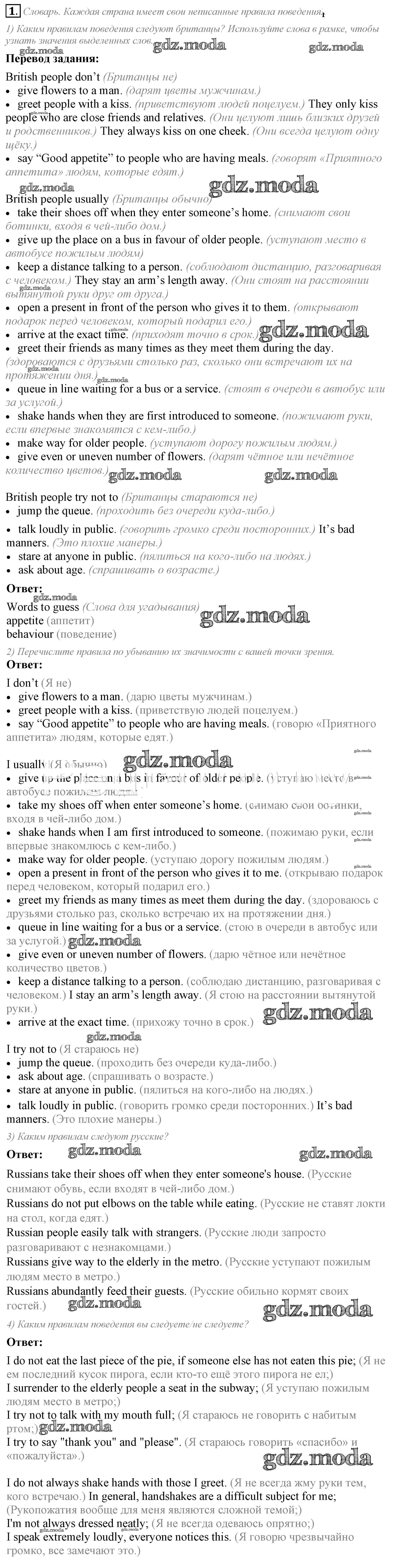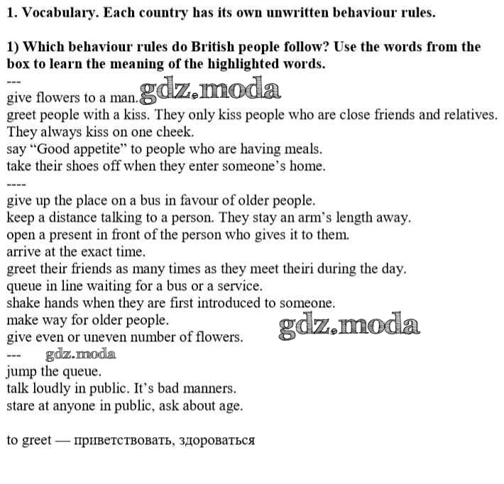 ОТВЕТ на задание № 1 Учебник по Английскому языку 8 класс Кузовлёв