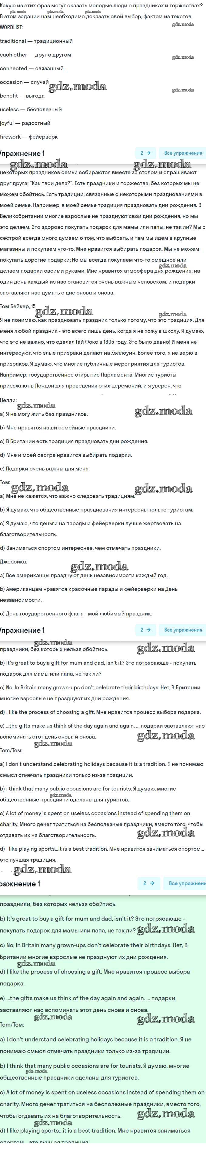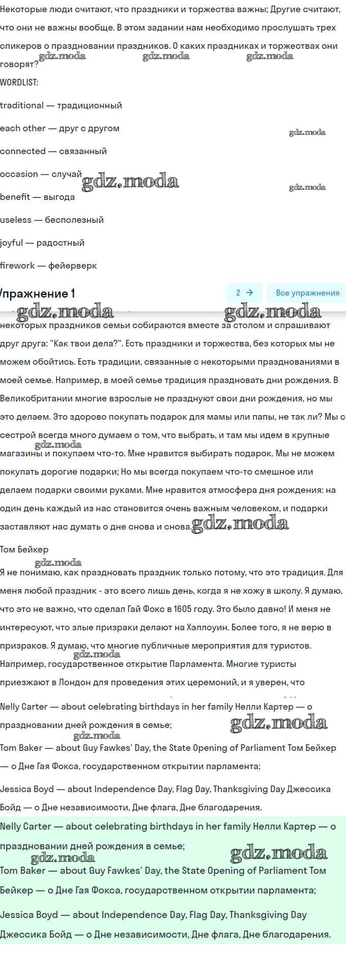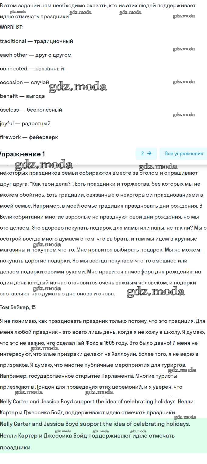 ОТВЕТ на задание № 1 Учебник по Английскому языку 8 класс Кузовлёв