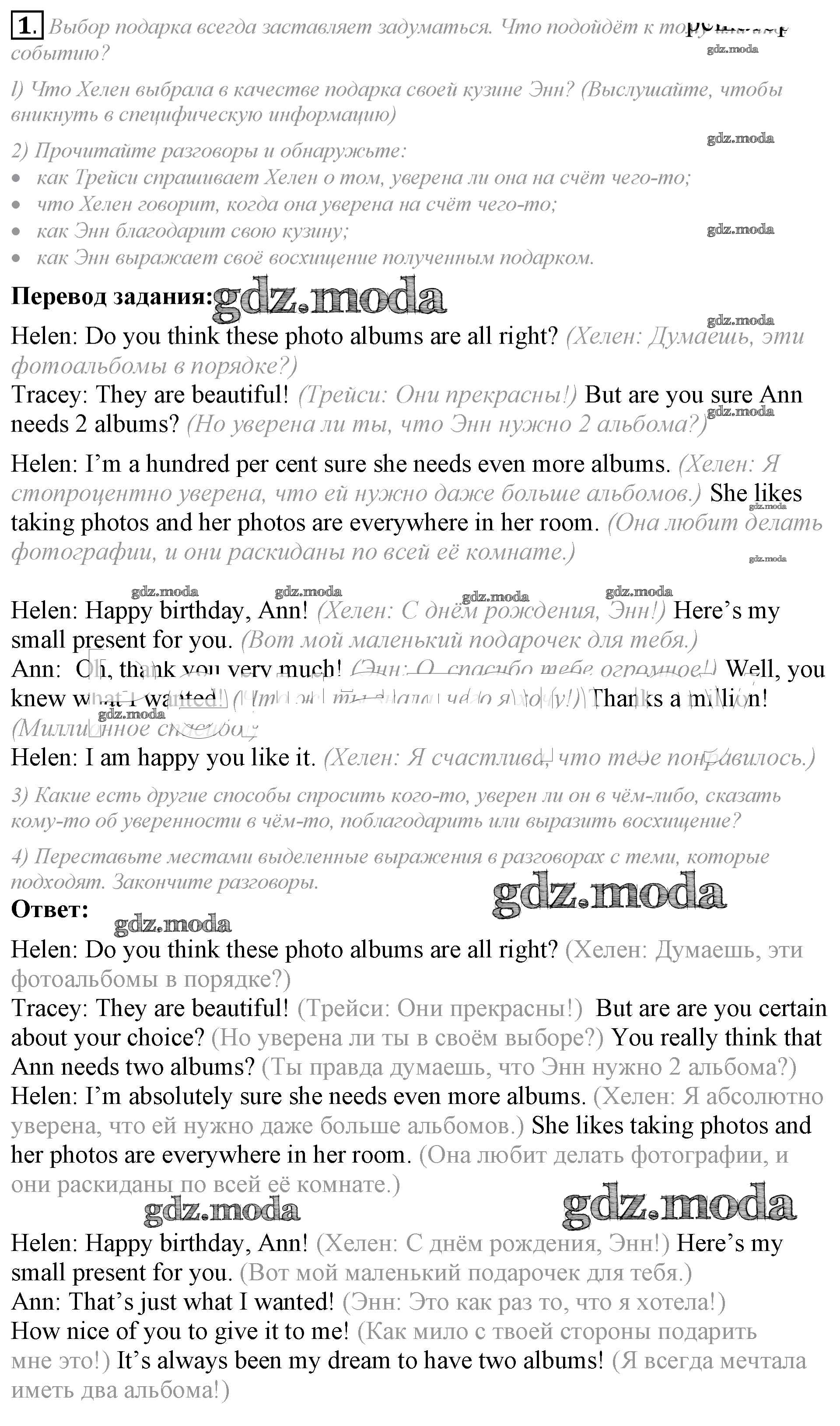 ОТВЕТ на задание № 1 Учебник по Английскому языку 8 класс Кузовлёв