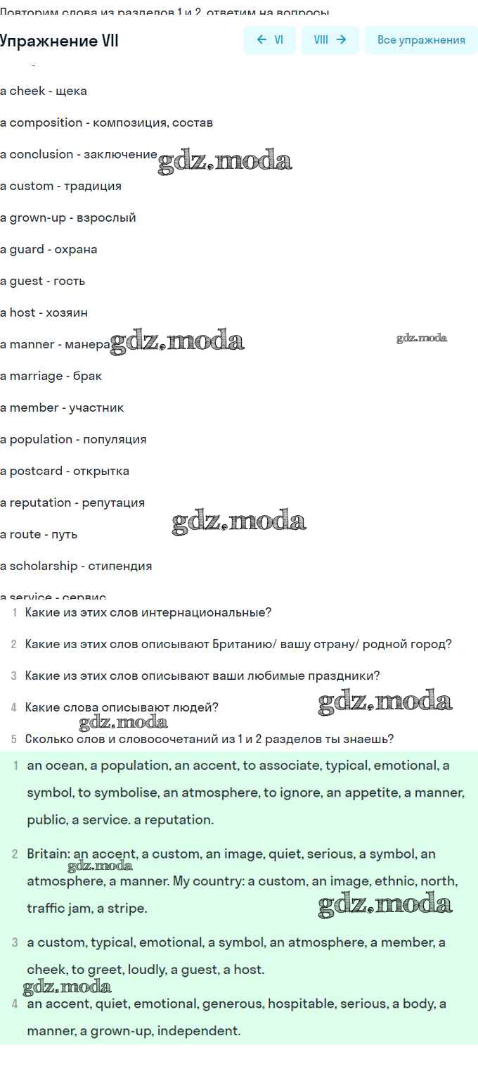 ГДЗ решение к заданию № VII Английский язык 8 класс Кузовлёв В.П. Просвещение 2015 ФГОС бесплатно на гдз.мода!