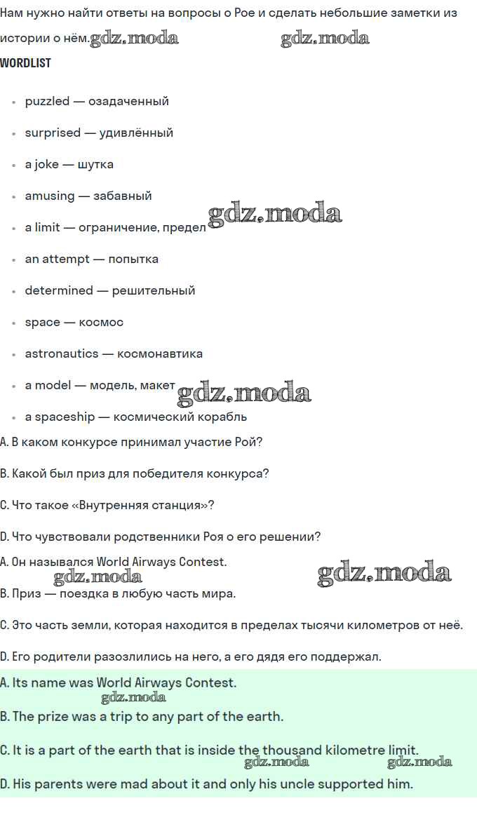 ГДЗ решение к заданию № 6 Английский язык 8 класс Кузовлёв В.П. Просвещение 2015 ФГОС бесплатно на гдз.мода!
