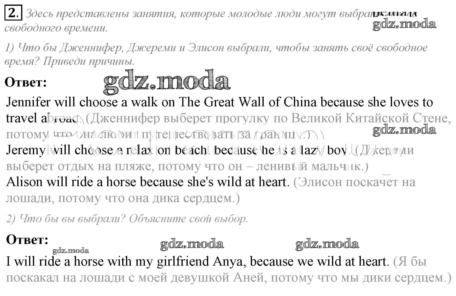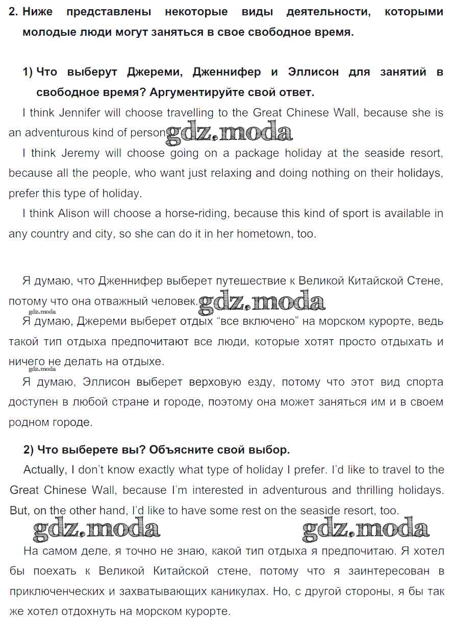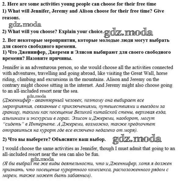 ГДЗ решение к заданию № 2 Английский язык 8 класс Кузовлёв В.П. Просвещение 2015 ФГОС бесплатно на гдз.мода!