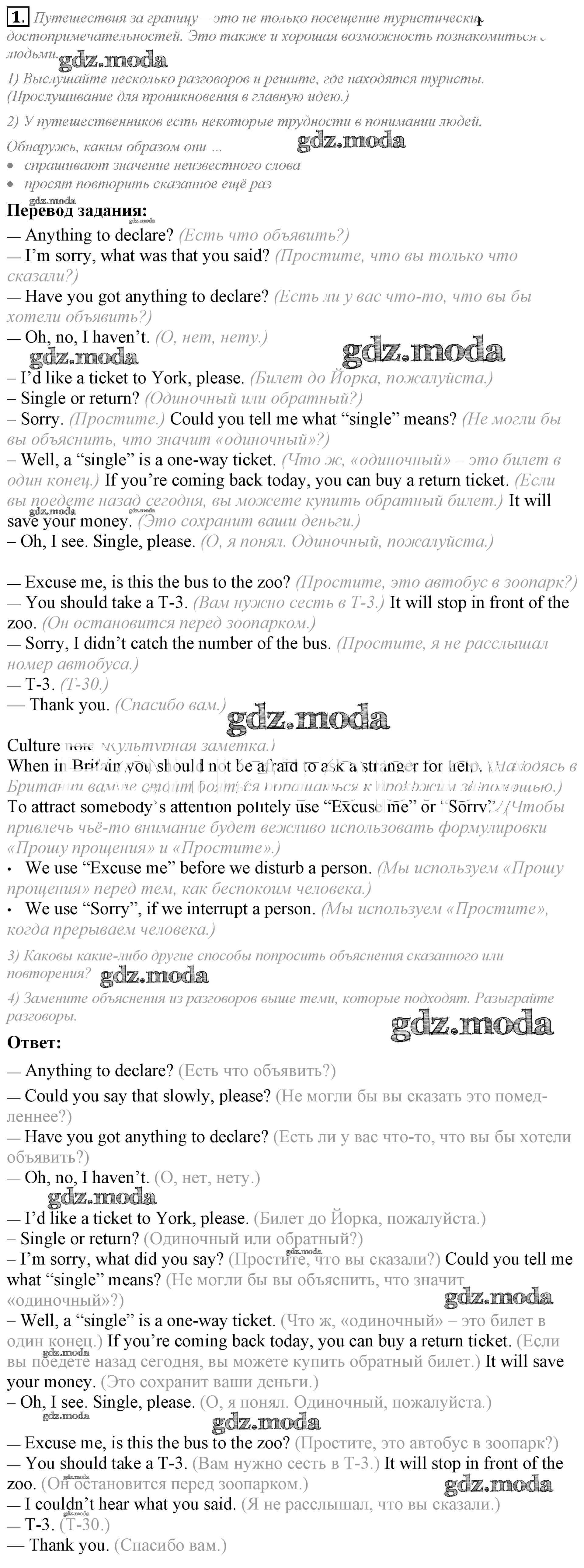 ОТВЕТ на задание № 1 Учебник по Английскому языку 8 класс Кузовлёв
