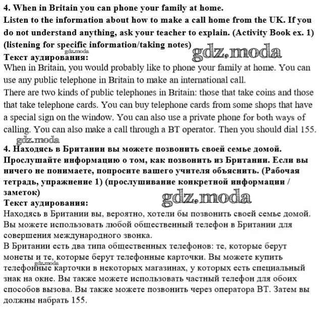 ГДЗ решение к заданию № 4 Английский язык 8 класс Кузовлёв В.П. Просвещение 2015 ФГОС бесплатно на гдз.мода!