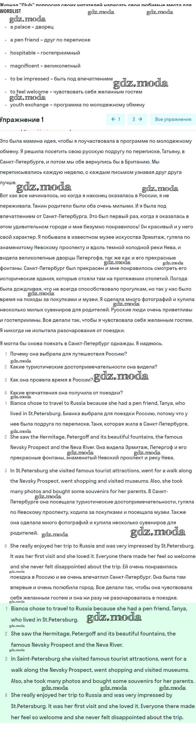ОТВЕТ на задание № 1 Учебник по Английскому языку 8 класс Кузовлёв