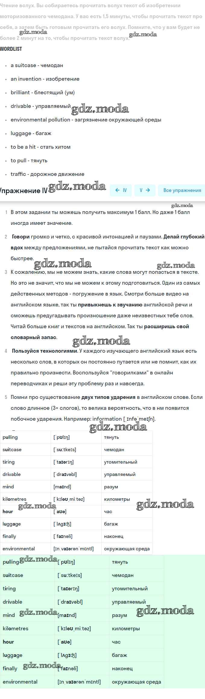 ГДЗ решение к заданию № IV Английский язык 8 класс Кузовлёв В.П. Просвещение 2015 ФГОС бесплатно на гдз.мода!