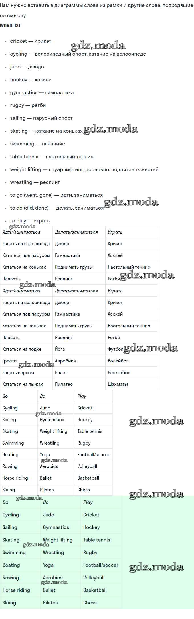 ГДЗ решение к заданию № 6 Английский язык 8 класс Кузовлёв В.П. Просвещение 2015 ФГОС бесплатно на гдз.мода!