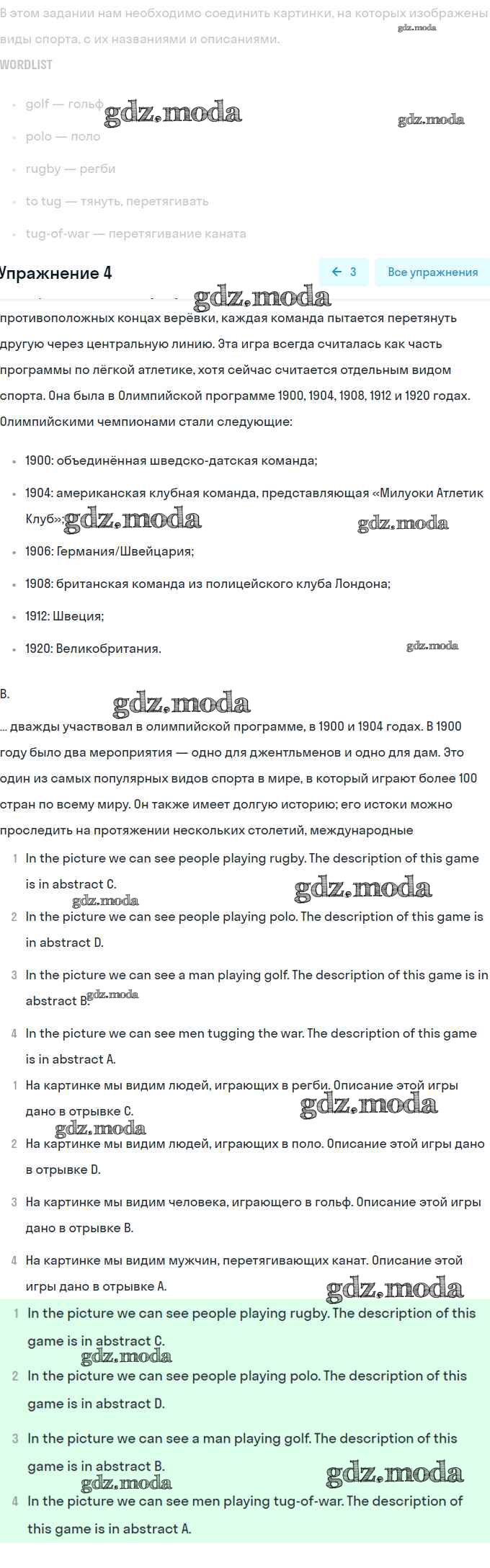 ГДЗ решение к заданию № 4 Английский язык 8 класс Кузовлёв В.П. Просвещение 2015 ФГОС бесплатно на гдз.мода!