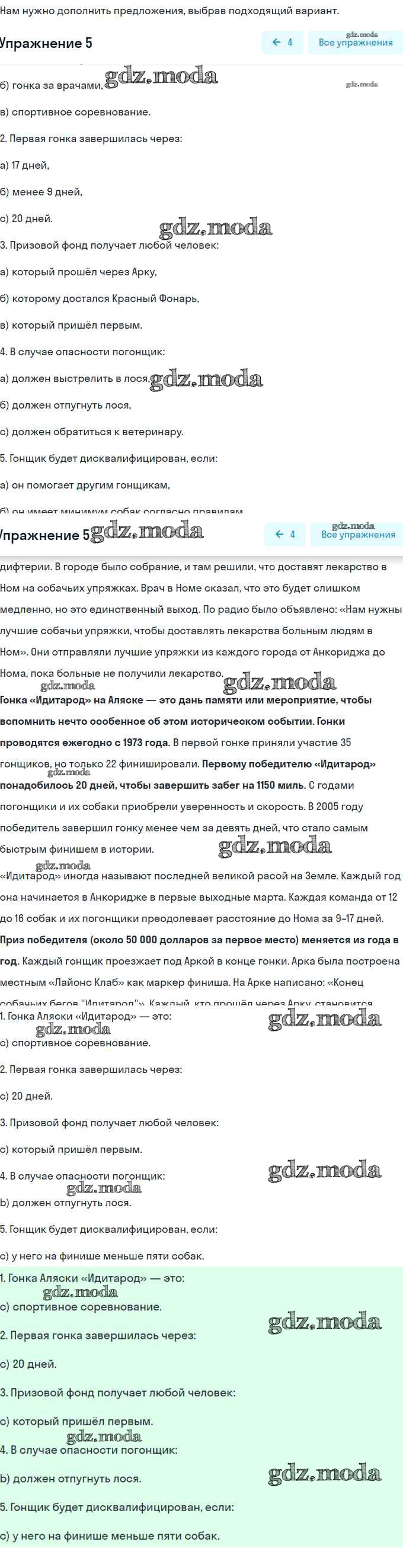 ГДЗ решение к заданию № 5 Английский язык 8 класс Кузовлёв В.П. Просвещение 2015 ФГОС бесплатно на гдз.мода!