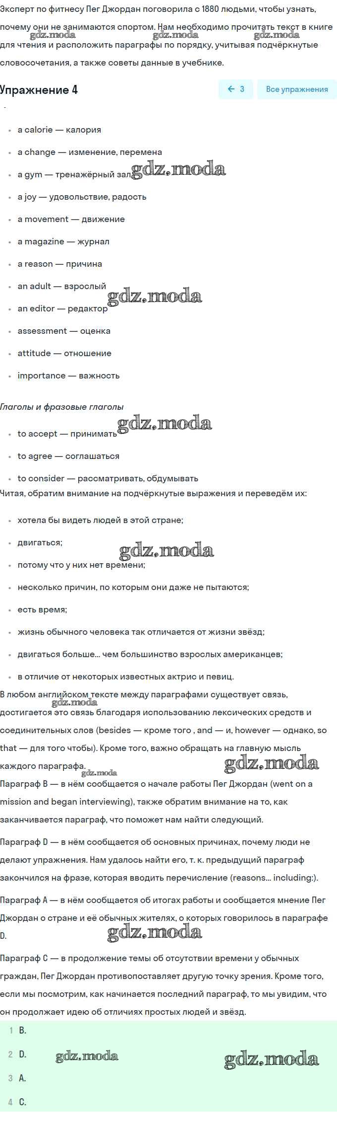 ГДЗ решение к заданию № 4 Английский язык 8 класс Кузовлёв В.П. Просвещение 2015 ФГОС бесплатно на гдз.мода!