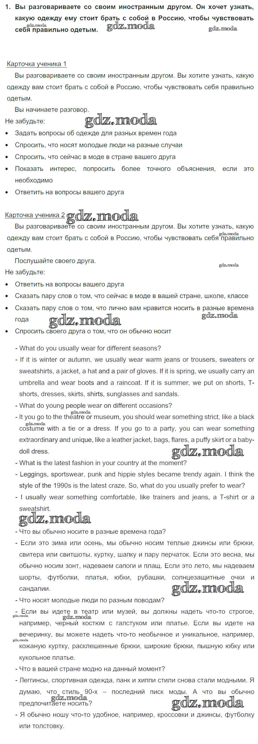 ОТВЕТ на задание № 1 Учебник по Английскому языку 8 класс Кузовлёв
