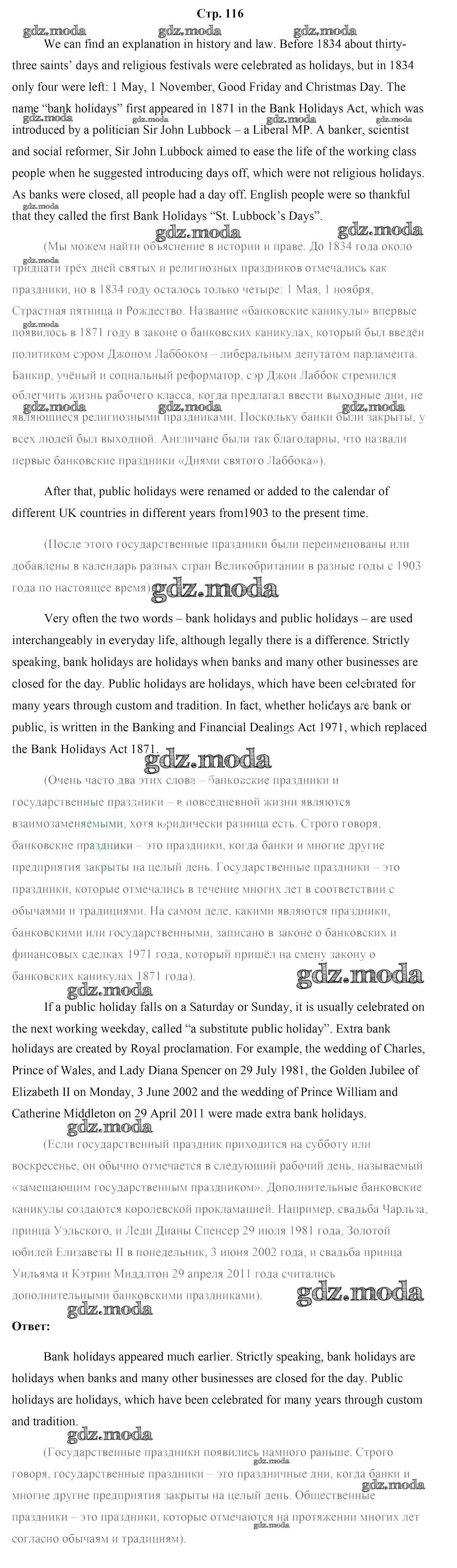 ОТВЕТ на задание № 116 Учебник по Английскому языку 8 класс Лапицкая