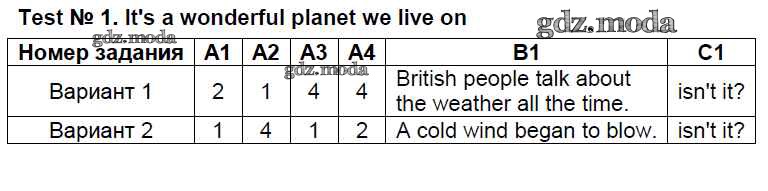 ОТВЕТ на задание № Test №1. It's a wonderful planet we live on Контрольно-измерительные материалы (КИМ) по Английскому языку 8 класс Лысакова