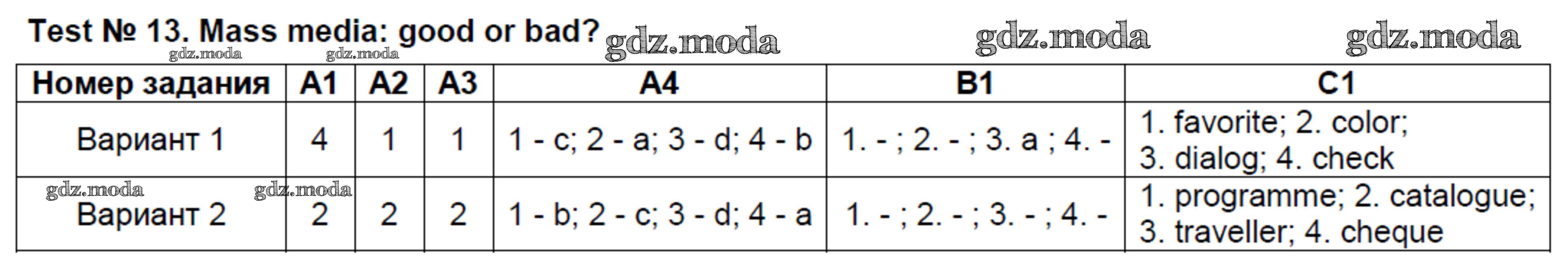 ГДЗ решение к заданию № Test №13. Mass media - good or bad Английский язык 8 класс контрольно-измерительные материалы Лысакова Л.В. ВАКО 2018 ФГОС бесплатно на гдз.мода!