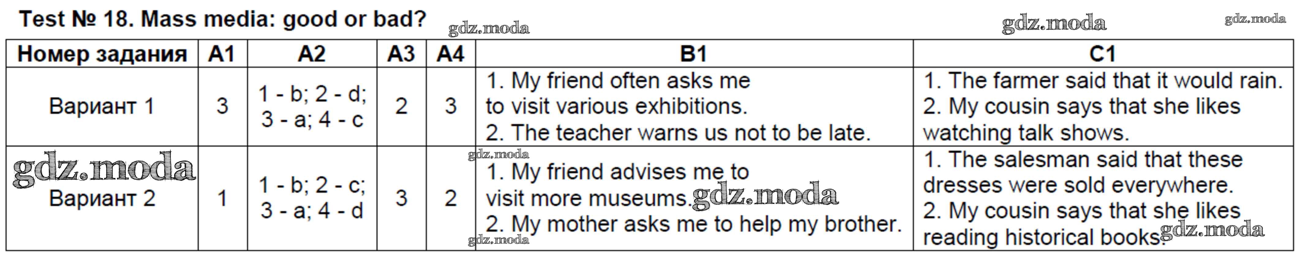 ГДЗ решение к заданию № Test №18. Mass media - good or bad Английский язык 8 класс контрольно-измерительные материалы Лысакова Л.В. ВАКО 2018 ФГОС бесплатно на гдз.мода!