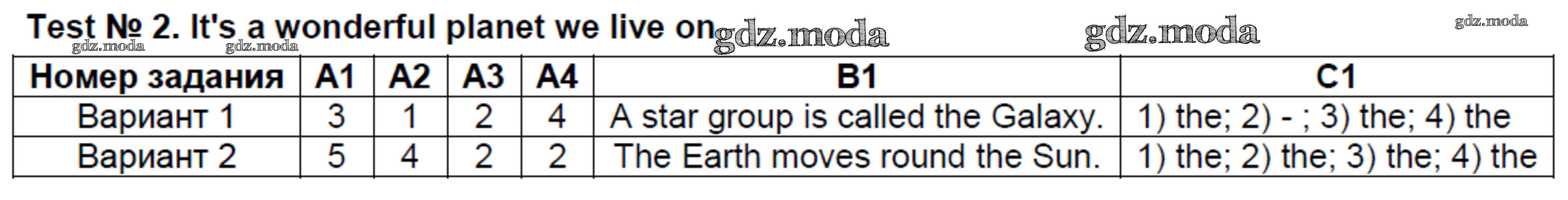 ОТВЕТ на задание № Test №2. It's a wonderful planet we live on Контрольно-измерительные материалы (КИМ) по Английскому языку 8 класс Лысакова