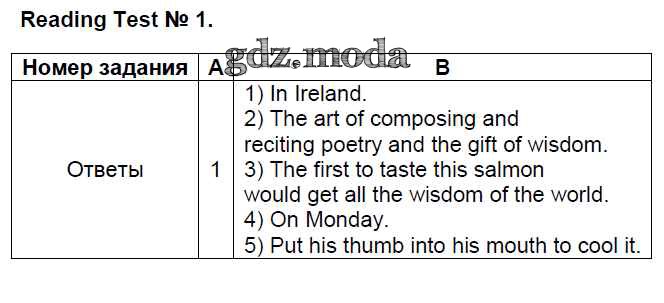 ОТВЕТ на задание № reading test №1 Контрольно-измерительные материалы (КИМ) по Английскому языку 8 класс Лысакова