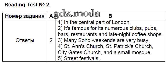 ОТВЕТ на задание № reading test №2 Контрольно-измерительные материалы (КИМ) по Английскому языку 8 класс Лысакова