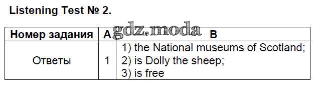 ОТВЕТ на задание № listening test №2 Контрольно-измерительные материалы (КИМ) по Английскому языку 8 класс Лысакова