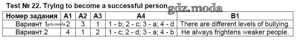 ОТВЕТ на задание № Test №22. Trying to become a successful person Контрольно-измерительные материалы (КИМ) по Английскому языку 8 класс Лысакова
