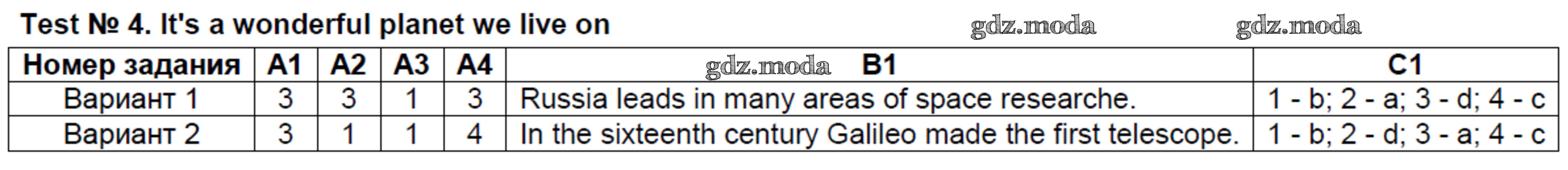 ОТВЕТ на задание № Test №4. It's a wonderful planet we live on Контрольно-измерительные материалы (КИМ) по Английскому языку 8 класс Лысакова