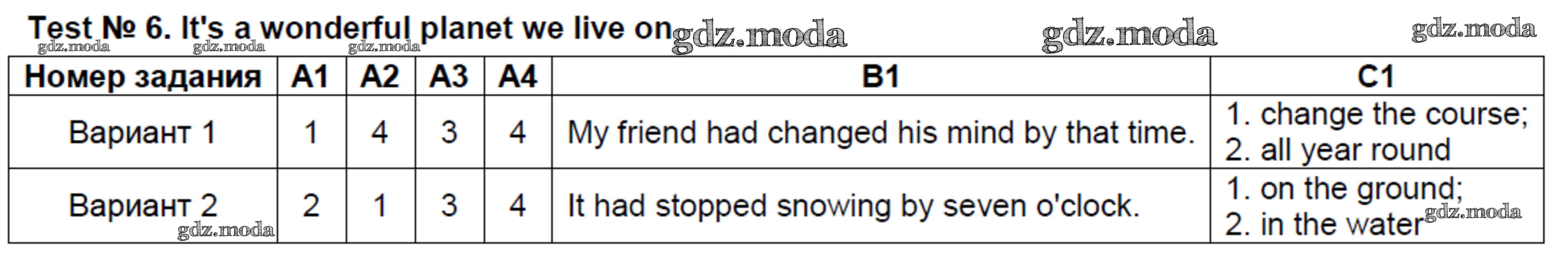 ОТВЕТ на задание № Test №6. It's a wonderful planet we live on Контрольно-измерительные материалы (КИМ) по Английскому языку 8 класс Лысакова