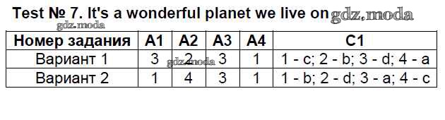 ОТВЕТ на задание № Test №7. It's a wonderful planet we live on Контрольно-измерительные материалы (КИМ) по Английскому языку 8 класс Лысакова