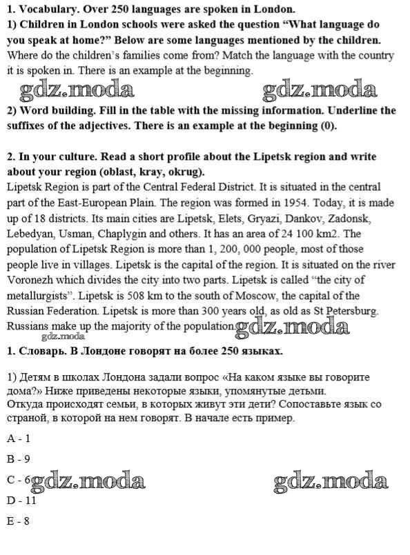 ОТВЕТ на задание № урок 1 Рабочая тетрадь по Английскому языку 8 класс Кузовлёв