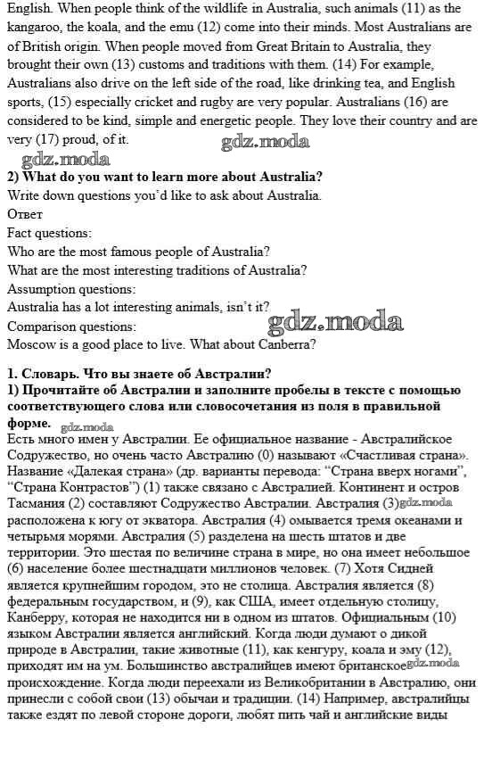 ОТВЕТ на задание № 1 Рабочая тетрадь по Английскому языку 8 класс Кузовлёв