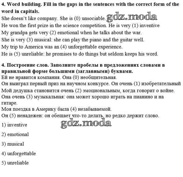 ГДЗ решение к заданию № 4 Английский язык 8 класс рабочая тетрадь Кузовлёв В.П. Просвещение 2014 ФГОС бесплатно на гдз.мода!