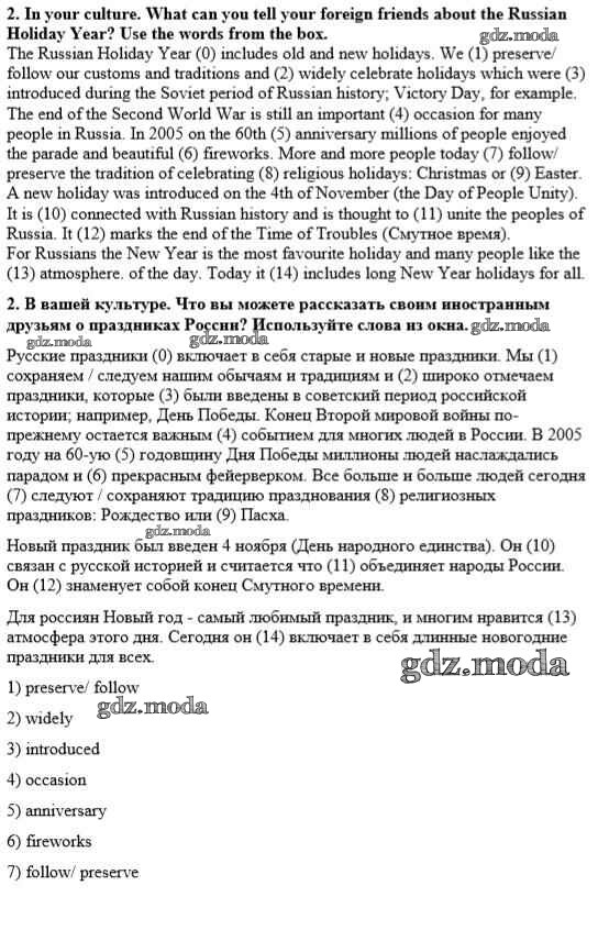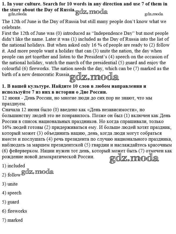 ОТВЕТ на задание № урок 1 Рабочая тетрадь по Английскому языку 8 класс Кузовлёв
