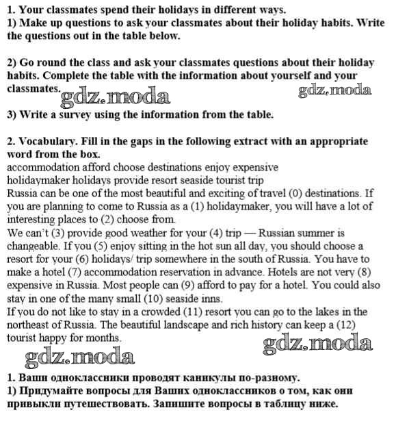 ОТВЕТ на задание № урок 1 Рабочая тетрадь по Английскому языку 8 класс Кузовлёв