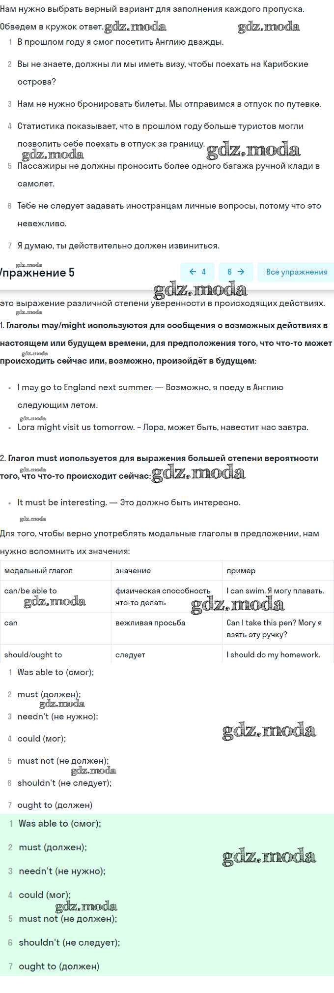 ОТВЕТ на задание № 5 Рабочая тетрадь по Английскому языку 8 класс Кузовлёв