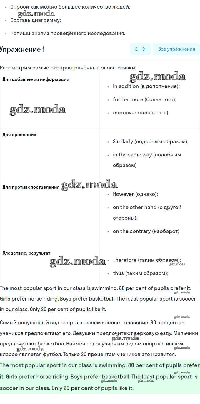 ОТВЕТ на задание № 1 Рабочая тетрадь по Английскому языку 8 класс Кузовлёв