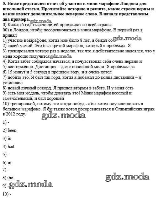 ГДЗ решение к заданию № 5 Английский язык 8 класс рабочая тетрадь Кузовлёв В.П. Просвещение 2014 ФГОС бесплатно на гдз.мода!