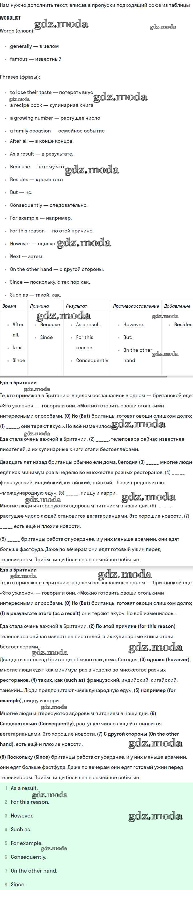 ОТВЕТ на задание № урок 8-9 Рабочая тетрадь по Английскому языку 8 класс Кузовлёв