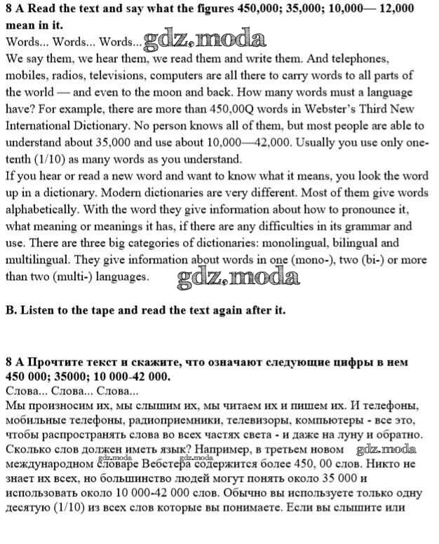 ГДЗ решение к заданию № 8 Английский язык 8 класс Афанасьева О.В. Дрофа 2017 ФГОС бесплатно на гдз.мода!