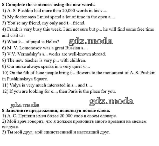 ГДЗ решение к заданию № 8 Английский язык 8 класс Афанасьева О.В. Дрофа 2017 ФГОС бесплатно на гдз.мода!