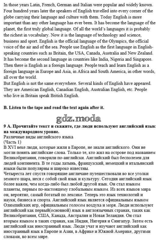 ГДЗ решение к заданию № 9 Английский язык 8 класс Афанасьева О.В. Дрофа 2017 ФГОС бесплатно на гдз.мода!