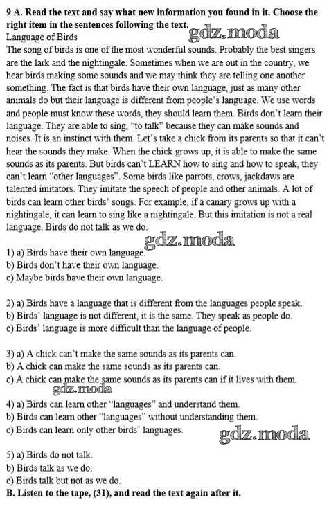 ГДЗ решение к заданию № 9 Английский язык 8 класс Афанасьева О.В. Дрофа 2017 ФГОС бесплатно на гдз.мода!