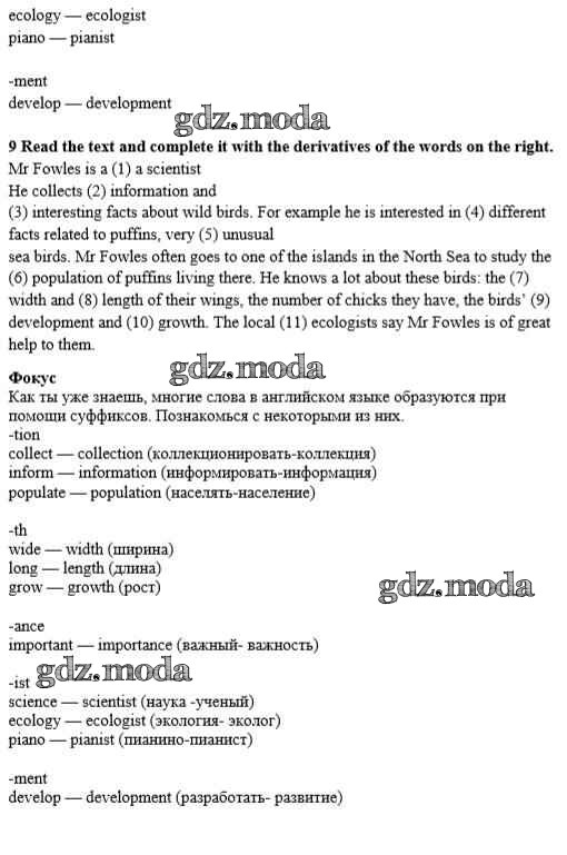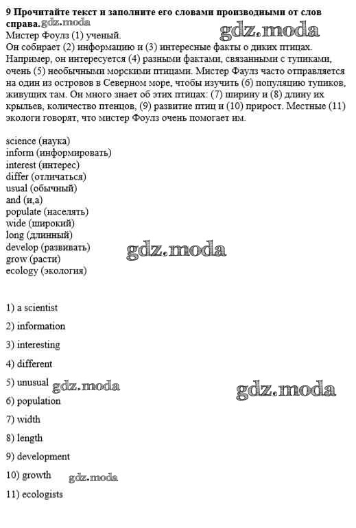 ГДЗ решение к заданию № 9 Английский язык 8 класс Афанасьева О.В. Дрофа 2017 ФГОС бесплатно на гдз.мода!