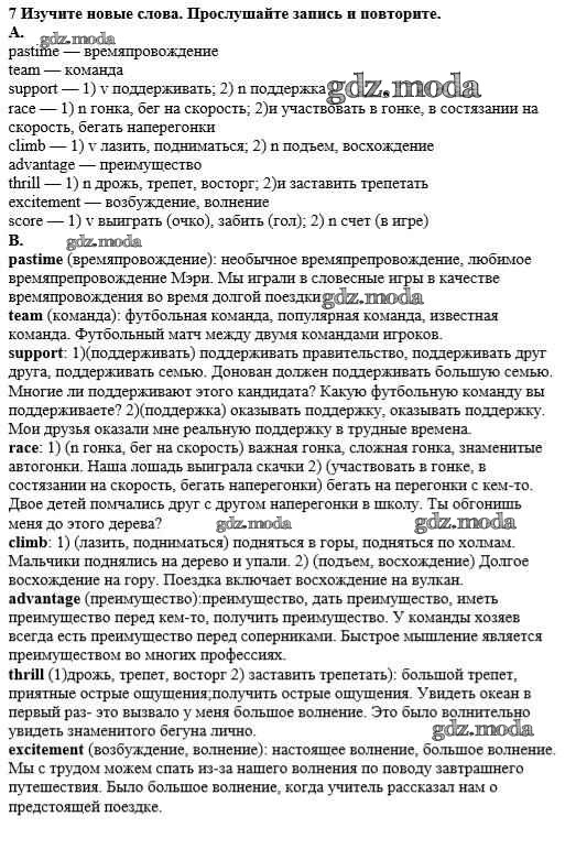 ГДЗ решение к заданию № 7 Английский язык 8 класс Афанасьева О.В. Дрофа 2017 ФГОС бесплатно на гдз.мода!