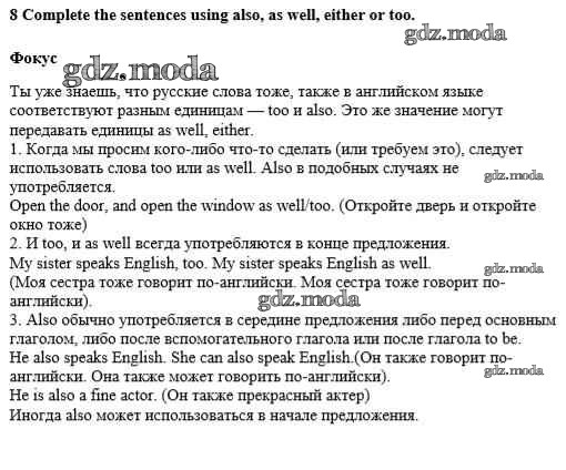 ГДЗ решение к заданию № 8 Английский язык 8 класс Афанасьева О.В. Дрофа 2017 ФГОС бесплатно на гдз.мода!