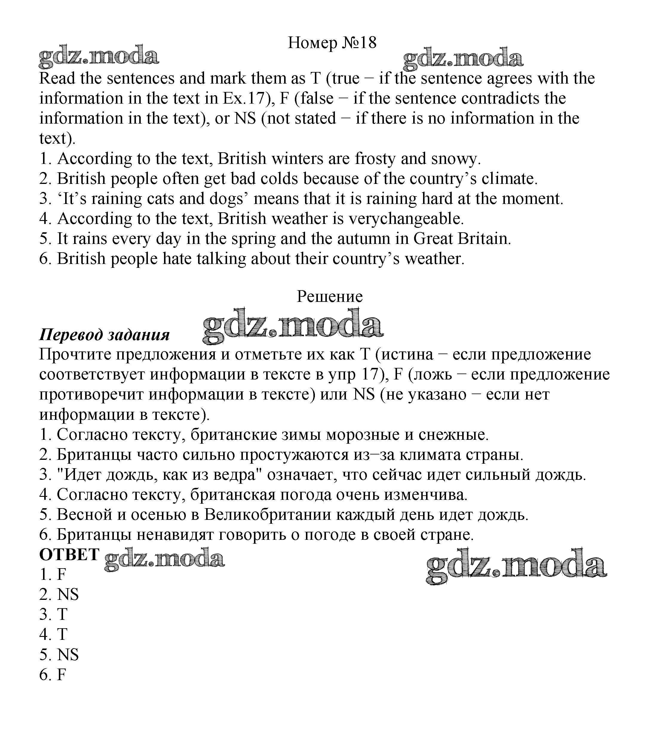 ОТВЕТ на задание № 18 Учебник по Английскому языку 8 класс Биболетова Enjoy English