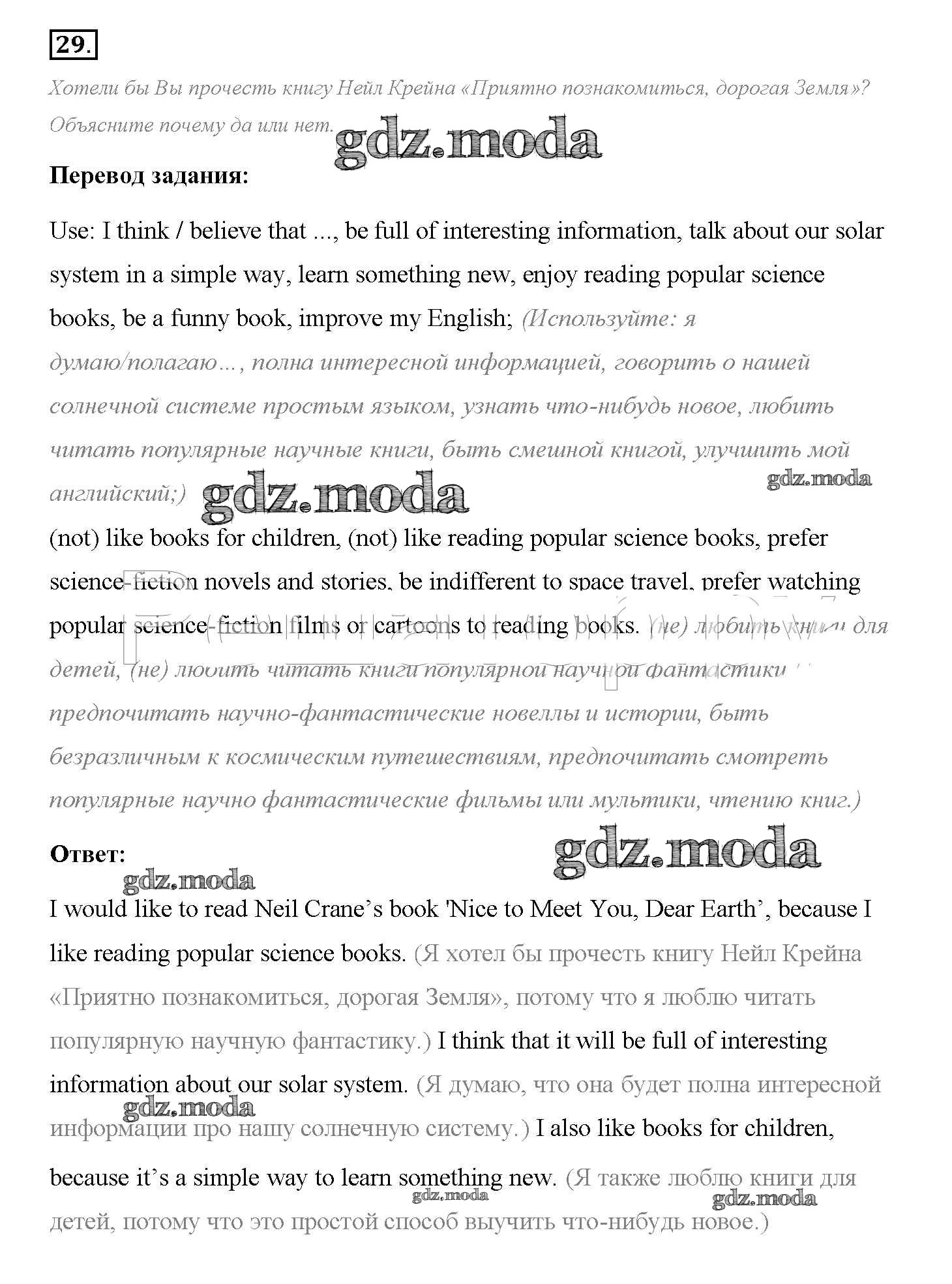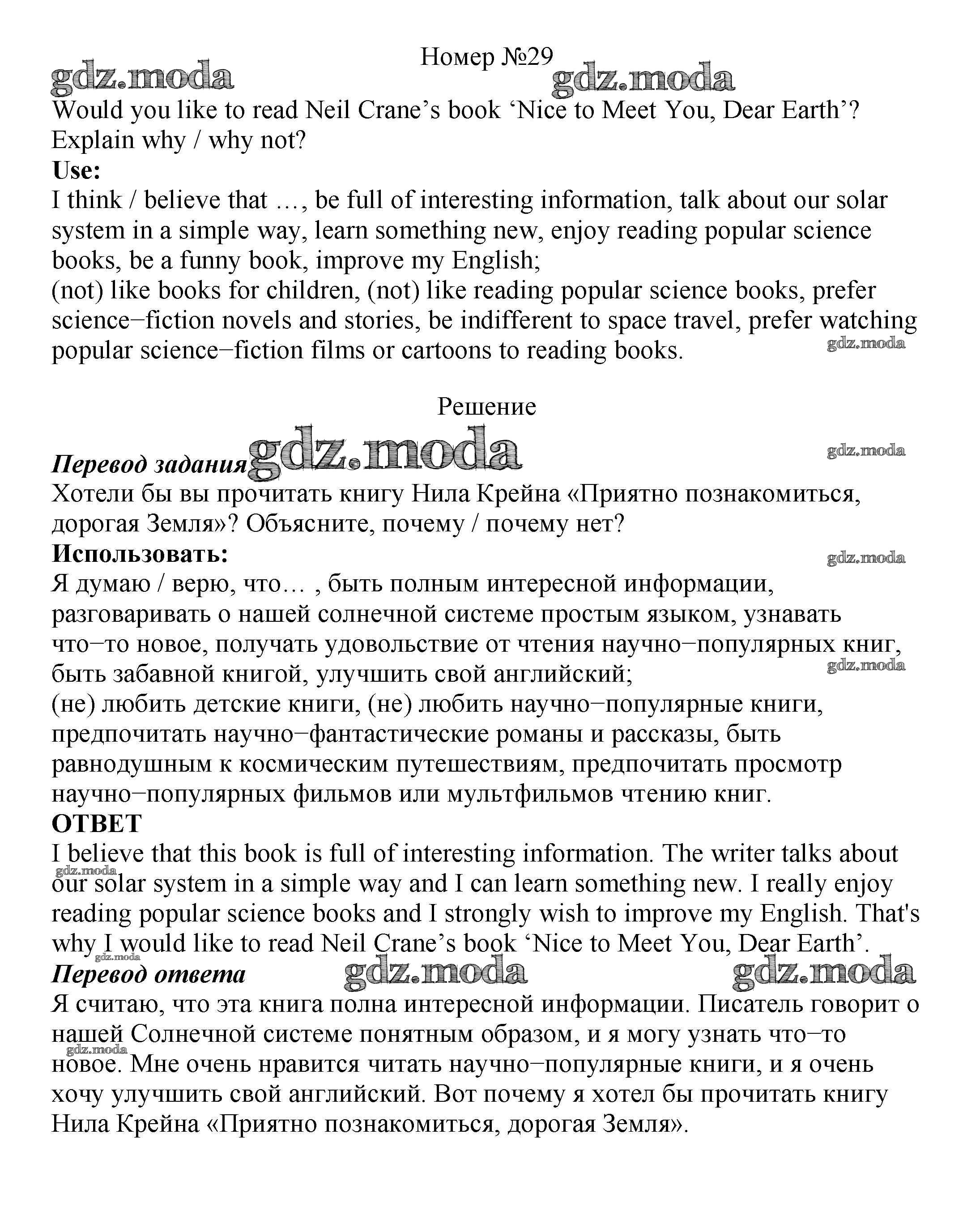 ОТВЕТ на задание № 29 Учебник по Английскому языку 8 класс Биболетова Enjoy English