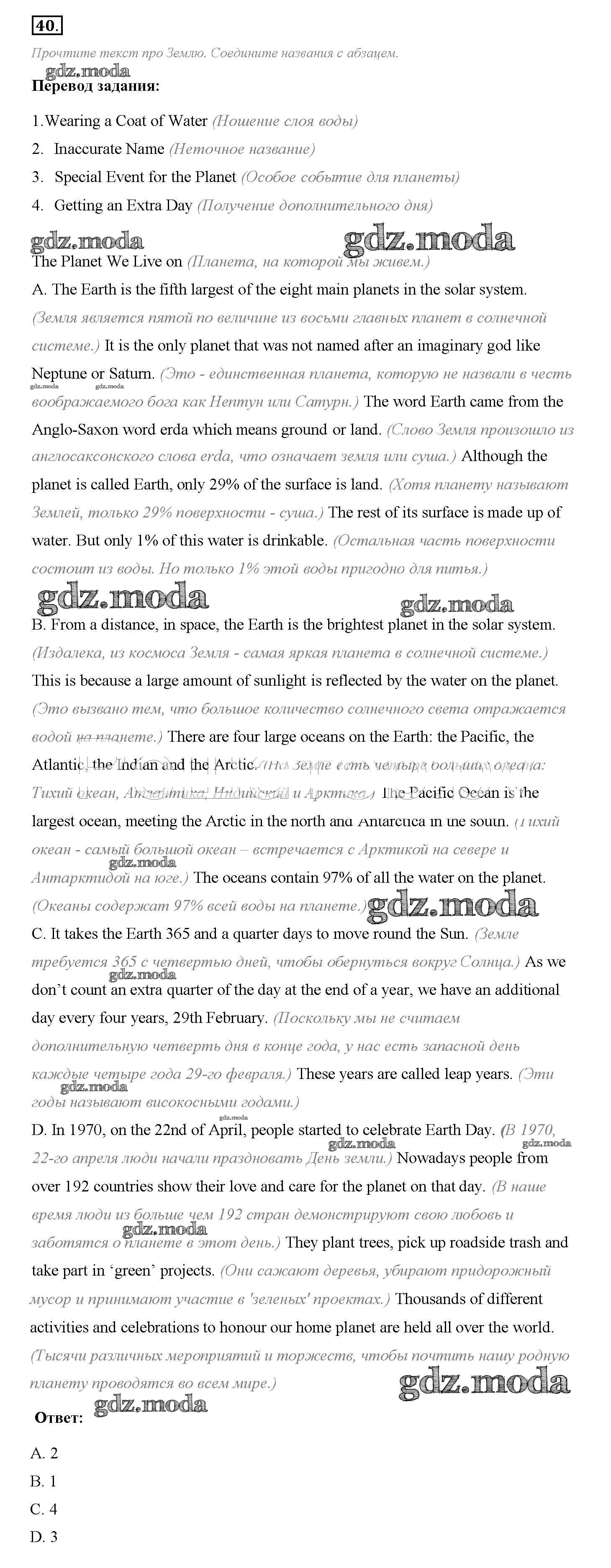 ОТВЕТ на задание № 40 Учебник по Английскому языку 8 класс Биболетова Enjoy English