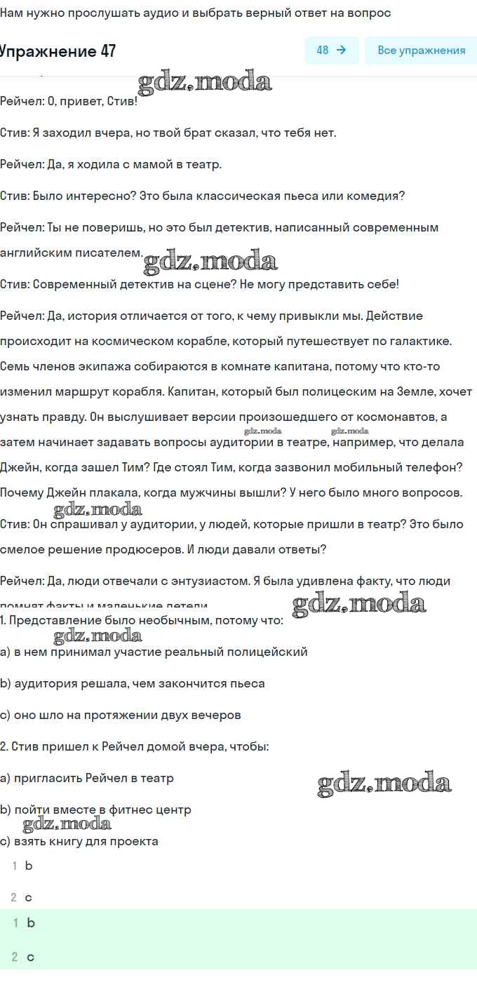 ОТВЕТ на задание № 47 Учебник по Английскому языку 8 класс Биболетова Enjoy English