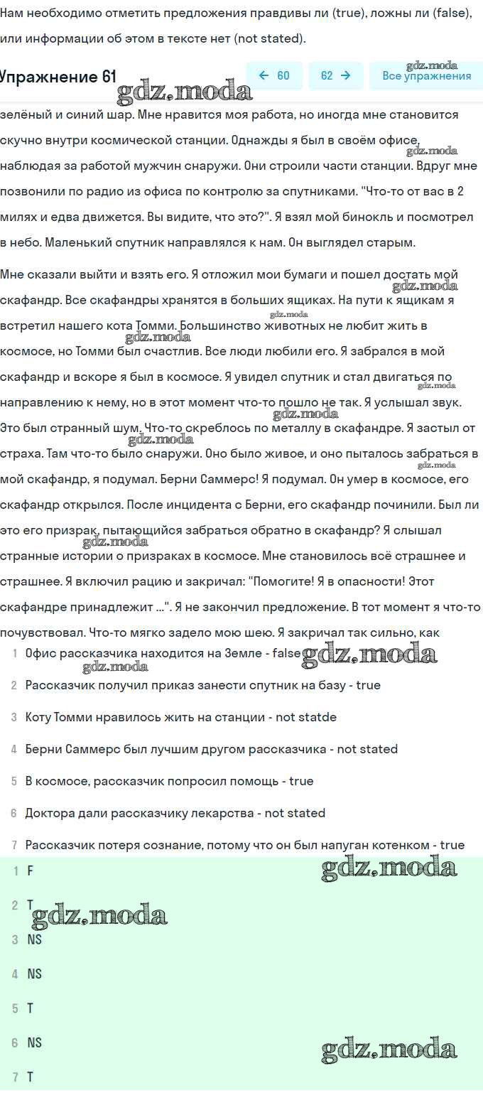 ОТВЕТ на задание № 61 Учебник по Английскому языку 8 класс Биболетова Enjoy English