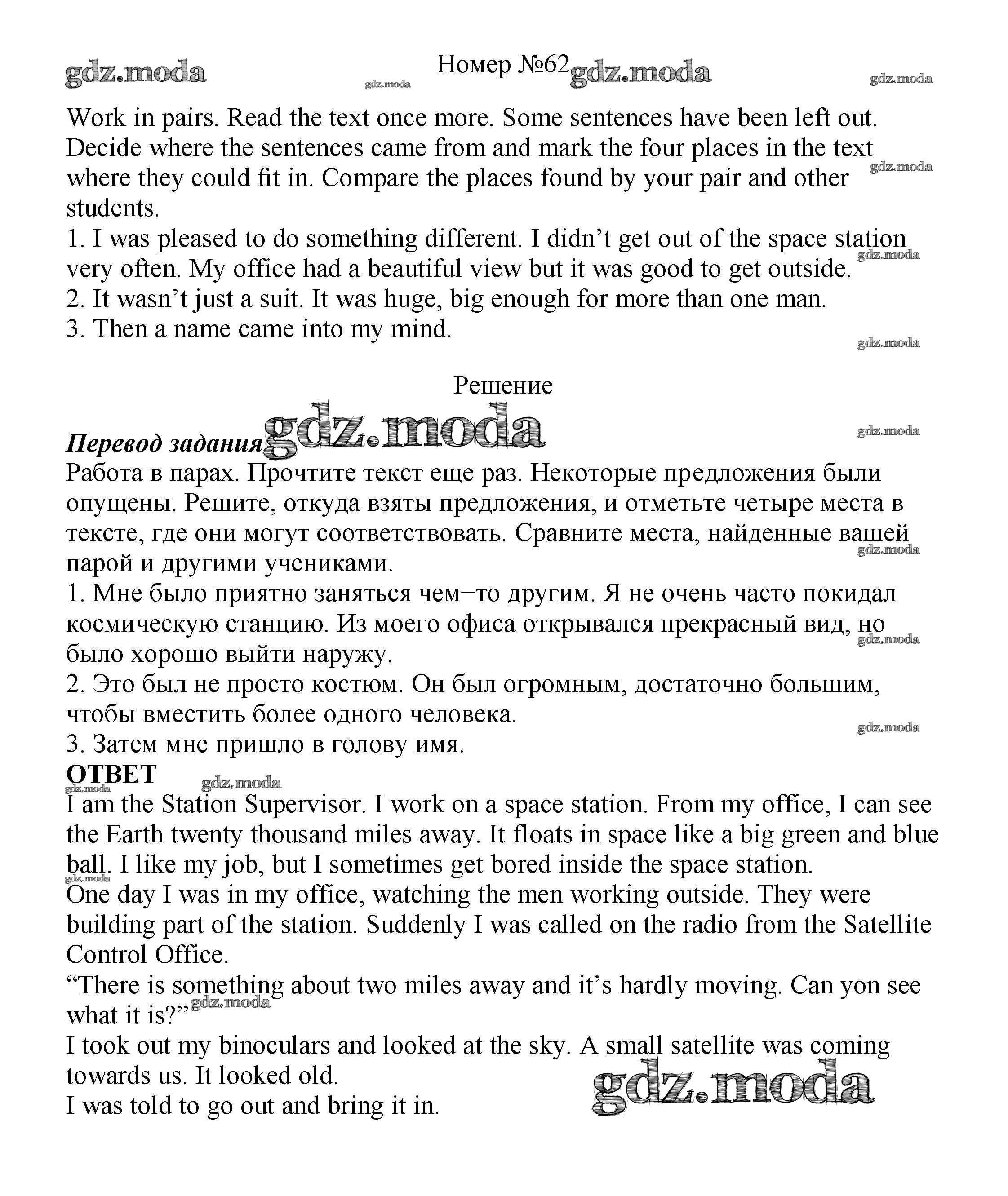 ОТВЕТ на задание № 62 Учебник по Английскому языку 8 класс Биболетова Enjoy English